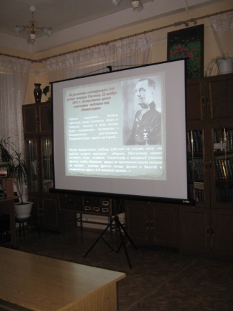 Сталинград: ни шагу назад!19 февраля 2013 года в читальном зале библиотеки им. А.С. Пушкина для студентов лесомеханического прошла медиалекция «Сталинград: ни шагу назад!». В феврале 2013 года исполнилось 70 лет со дня окончания Сталинградской битвы, битвы которую смело можно назвать «самая-самая»: самая продолжительная (200 дней и ночей), самая кровопролитная (каждые 25 секунд в Сталинграде умирал солдат или офицер) и самая выдающаяся победа русского оружия. |
